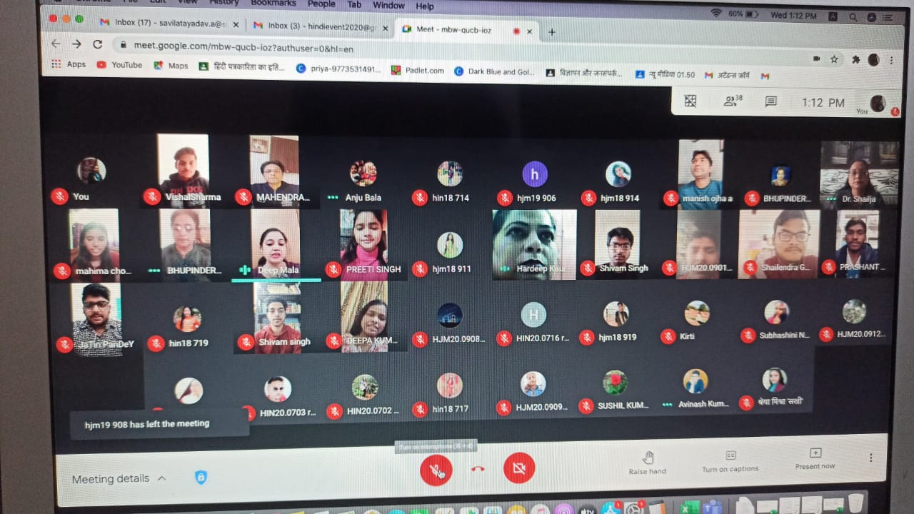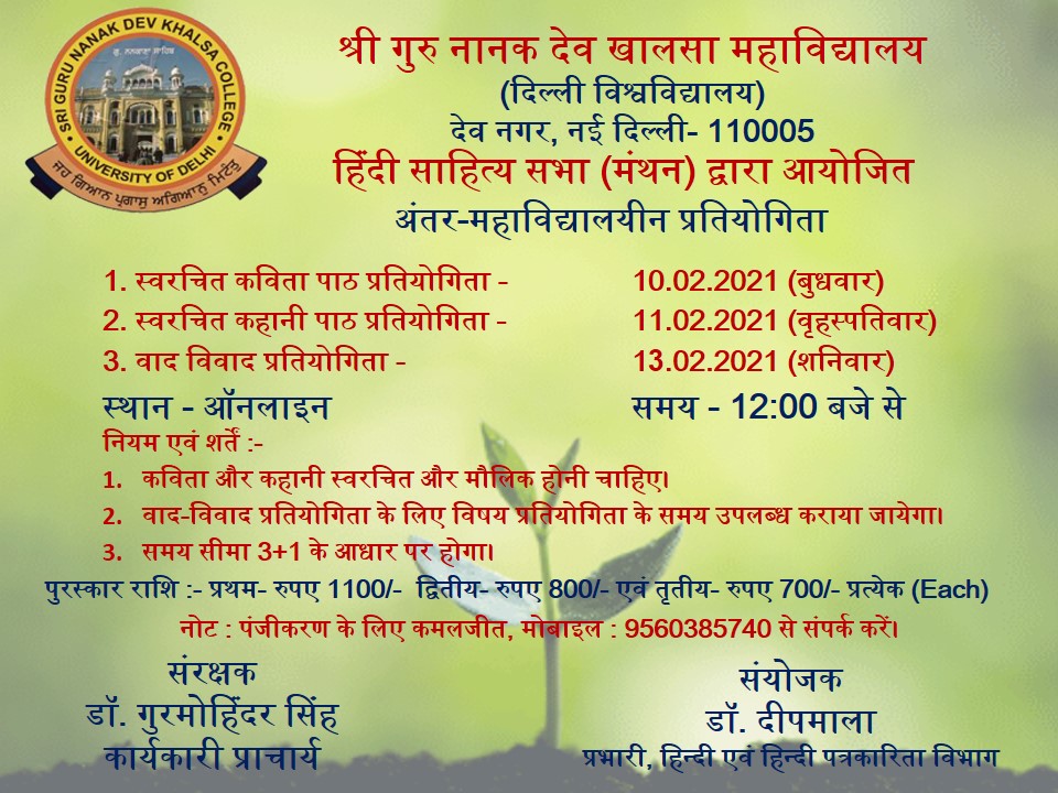 हिंदी साहित्य सभा ‘मंथन’ द्वारा अंतर-महाविद्यालयीन प्रतियोगिता का आयोजन, 2021