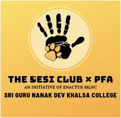 THE DESI CLUB is the society that works towards the welfare of stray animals. This society is the part of People's for Animal - PFA (NGO) that recently got established in our college by a group of members working for the welfare of stray animals. The activities of the society include Rescues of Stray kids in emergency conditions, Adoptions of the stray kids or the breed abandoned puppies, cats, Conducting webinars/seminars and visits to shelter houses to serve animals in need, we help small puppies and kittens to get a forever home for them and make their living better.