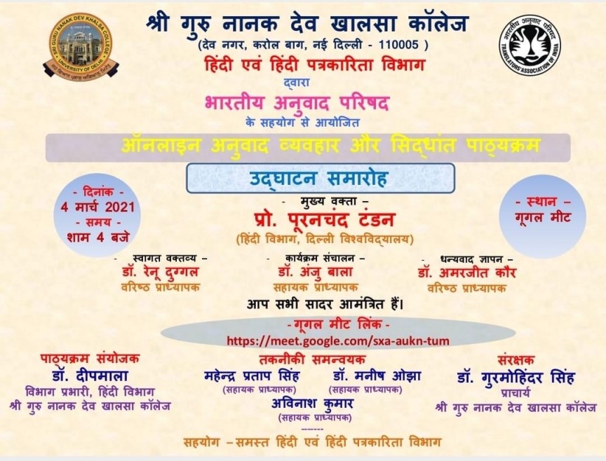● मंथन द्वारा 4 मार्च 2021 से 24 मार्च 2021 तक ऑनलाइन अनुवाद व्यवहार एवं सिद्धांत लघु अवधि सर्टिफिकेट कोर्स का आयोजन किया गया जिसके द्वारा विद्यार्थियों में अनुवाद करने की कला का विकास हुआ।