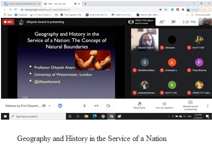 Moving ahead the department organized another webinar on the topic “Geography and History in the Service of a Nation: The Concept of Natural Boundaries” on 18th February 2021. The lecture was delivered by Prof. Dibyesh Anand, University of Westminster, UK. He enlightened the students about how the disciplines of history and geography have been used by nation states to protect their sanctity. It was an interesting webinar which also included concepts from different disciplines like international relations and political science.