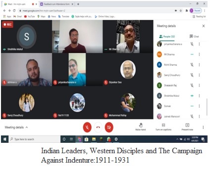 Moving ahead the department organized another webinar on the topic “Geography and History in the Service of a Nation: The Concept of Natural Boundaries” on 18th February 2021. The lecture was delivered by Prof. Dibyesh Anand, University of Westminster, UK.This was a very interactive session as faculty and students and alumnus of different colleges of University of Delhi attended it with full of enthusiasm.Coming forward, An Intra-College Panel Discussion was organized by Virsa: The History Society on 2nd March 2021 on Google Meet on “Colonialism in India: White Men’s Burden or White Men’s Business. Majority of the participants were from the first year.They learned from this Panel discussion a lot by not only attending the event but also participating in it.
